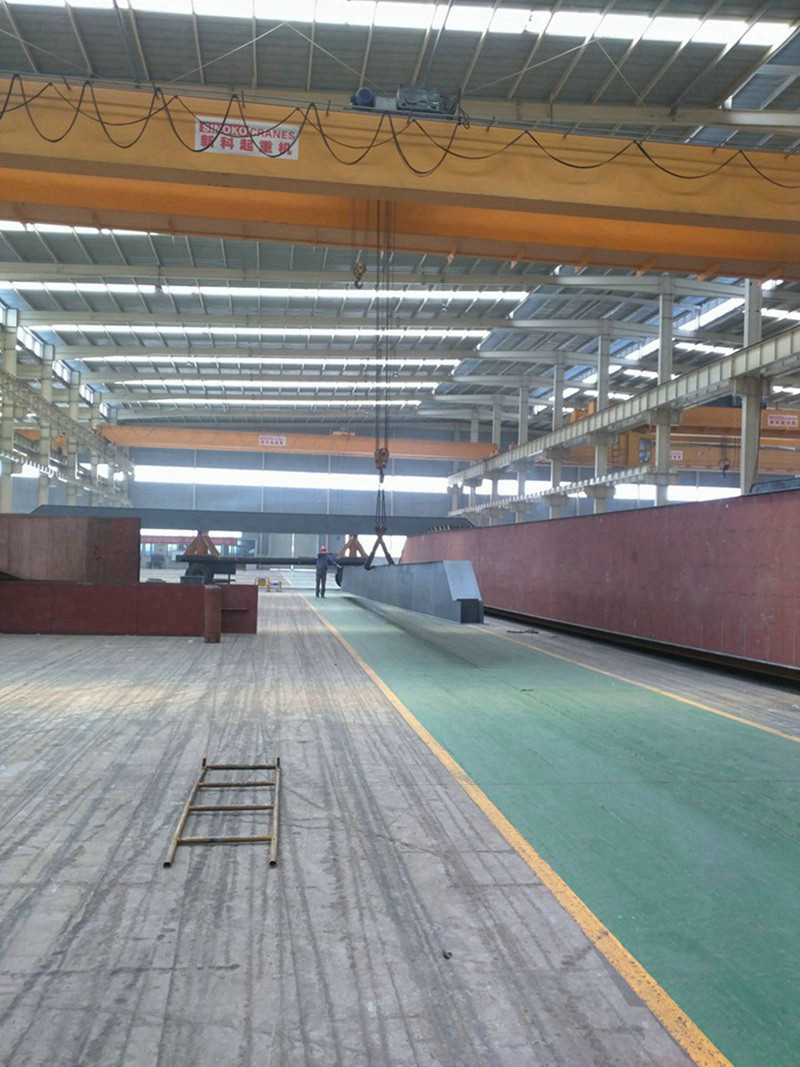 The main steel frame of bridge crane includes girder box, platform, pantograph and trolley rail. The Main girder will be strictly fabricated and detected in our workshop according the design and national standard. The toughness and strength are perfect combination. It applies shot blasting and high quality painting. Well-chosen choose steel plate, advanced welding technology and equipment.